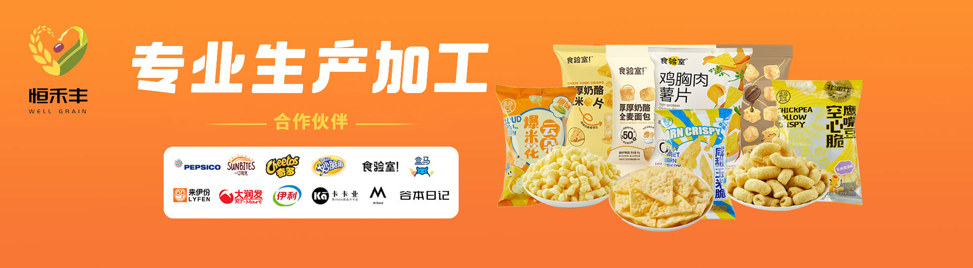 目前,恒禾豐擁有占地75畝的產業園區,廠房面積約4萬平方米,分為6個生產車間,分期建有13條生產線,并擁有40多臺包裝機,專業生產加工燕麥片、谷物脆、面包丁、花色米餅、低溫真空膨化奶酪及果蔬、各種油炸和擠出膨化食品。